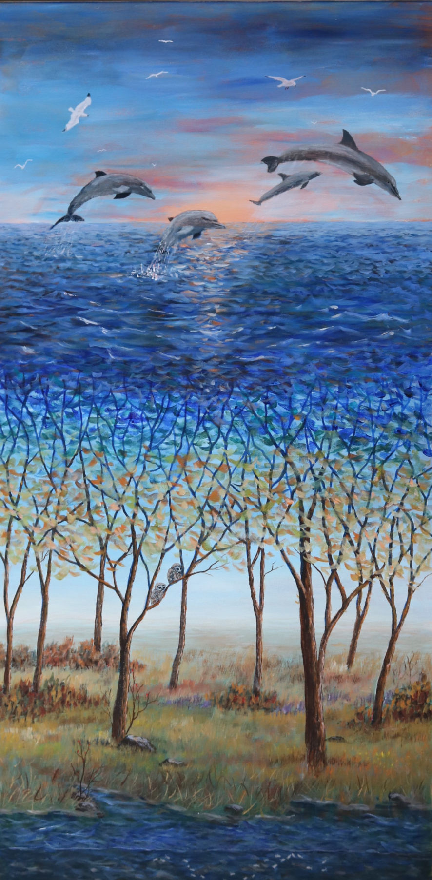 Artist Bio: Beryl Fournier paints intriguing acrylic works to express her awe of the mystery and beauty of nature some call “Sunny Surrealism”.